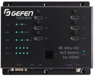 Kieruje cztery źródła UHD do dwóch wyjść UHD Obsługuje rozdzielczości do Ultra HD 4K (3840 x 2160 @ 60Hz 4:2:0 lub 30Hz 4:4:4), 4K Cinema (DCI) @ 24 lub 30Hz 4:4:4) oraz 1080p Full HD HDMI 2.0 Zgodność z HDCP 1.4 Obsługa 12-bitowego koloru Deep Color (do 1080p Full HD) Pass-through 3DTV, Lip Sync …