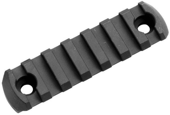 Magpul RIS M-LOK - 7 bramek to szyna Picatinny przeznaczona do montażu akcesoriów strzeleckich na broni z interfejsem mocowania M-LOK i MOE. Szyna Magpul Picatinny do łoża z systemem M-LOK MOE Szynę wykonano z anodyzowanego aluminium Mil-Spec o matowym wykończeniu. Aby zapobiec zahaczaniu szyną o elementy wyposażenie, jej krawędzie poddano skośnemu fazowaniu. Szynę mocujemy na łożu M-LOK/ MOE za pomocą śrub z naniesionym klejem aerobowym do gwintów. Ten model szyny ma 7 gniazd montażowych i maksymalną długość roboczą 83 mm. Dzięki szynie RIS Magpul do broni możemy mocować wybrane akcesoria strzeleckie m.in.: chwyt pionowy, latarkę taktycznę, bipod itp.