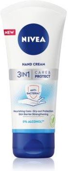 Dzięki olejkowi jojoba Twoje dłonie będą pięknie miękkie i odżywione. Chroń swoją skórę i wypróbuj: Krem do rąk NIVEA 3 w 1 Care & Protect Twoje dłonie są suche i popękane? Nie tylko zimno wysusza skórę dłoni. Zawierają one alkohol, który odwadnia skórę. Dlatego tak ważne jest zapewnienie skórze odpowiedniego nawilżenia i odżywienia. Krem do rąk 3w1 Care & Protect ma działanie antybakteryjne, a także wzmacnia warstwę ochronną skóry. Zawiera również olejek jojoba, dzięki czemu skóra otrzymuje wszystkie potrzebne składniki odżywcze i jest aksamitnie miękka.Właściwości:- Pozostawia dłonie odżywione i miękkie dzięki zawartości olejku jojoba. - Wzmacnia barierę ochronną skóry. - Działa antybakteryjnie. - Łatwo się rozprowadza i nie pozostawia mięsistej warstwy.Sposób użyciaPrzed nałożeniem kremu na dłonie należy je dokładnie umyć i osuszyć. Nałożyć odpowiednią ilość kremu na dłoń. Dokładnie rozprowadź krem. Nie zapomnij wetrzeć go między palce. Dzięki praktycznemu opakowaniu krem można mieć zawsze pod ręką. Care & Protect Hand Cream - Krem do rąk 3w1 75ml