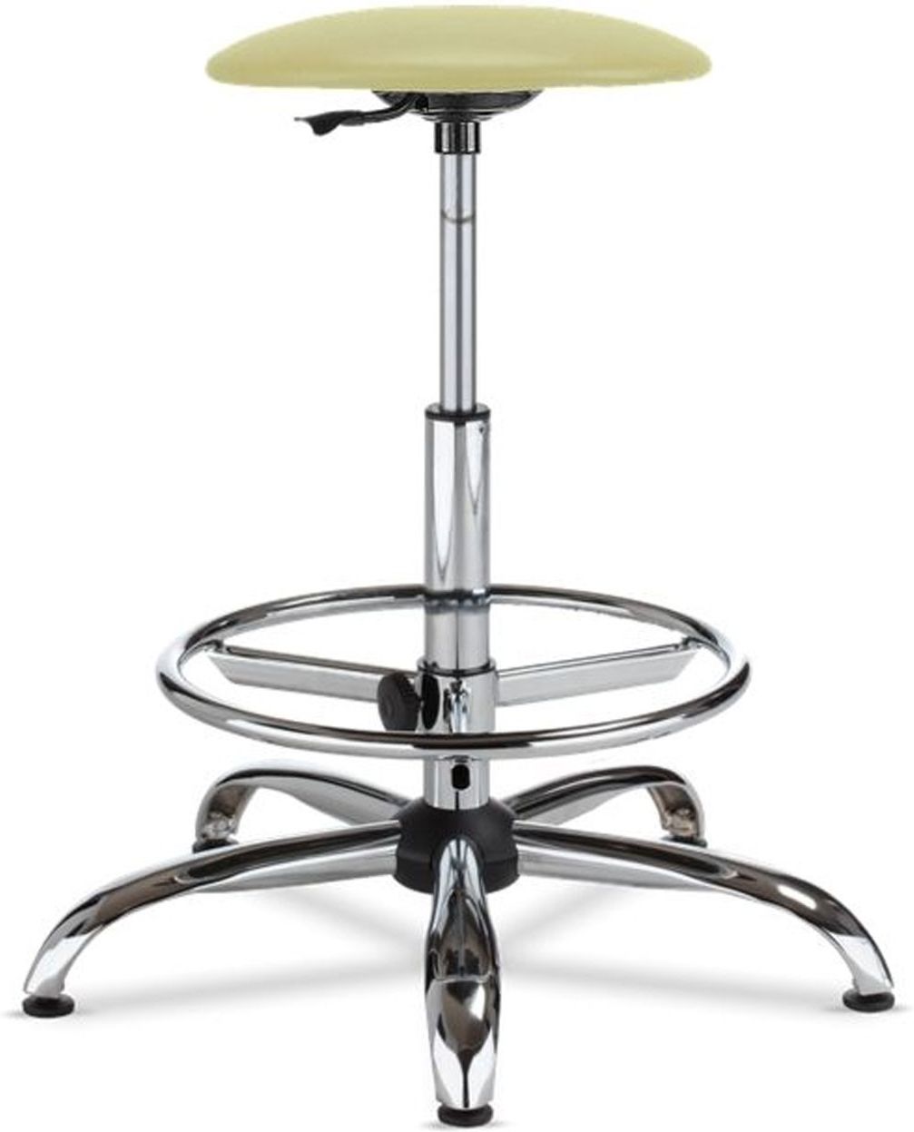 Goliat Ring Base to bardzo praktyczny model o szerokim zastosowaniu, sprawdzony przezKlientóww każdych warunkach. Siedzisko jesttapicerowane, do wyboru przygotowano tkaniny w kilkudziesięciu kolorach, zobacz je w zakładce MATERIAŁY. Oba rodzaje tkaniny dostępne dla tego modelu znajdą Państwo również w Cenniku Krzesła. Płynnie regulowana wysokość siedziska za pomocą podnośnika pneumatycznego, na uwagę zwraca zakres możliwej regulacji, który wynosi aż 26,5 cm. Metalowa chromowana podstawa jezdna jest trwała, elegancka, łatwo zmywalna. Metalowy chromowany podnóżek posiada możliwość regulacji wysokości, pozwala na swobodne wsparcie stóp podczas pracy. W podstawie montowane są stopki, ale podstawa przystosowana jest do montaż kółek, mogą je Państwo zamówić - DODATKOWA OPCJA W KOSZYKU PODCZAS SKŁADANIA ZAMÓWIENIA. Produkt objęty jest 3 letnim programem gwarancyjnym w systemie door to door dla Państwa pełnej wygody, ewentualne usterki naprawiane są przez serwisanta w miejscu użytkowania krzesła. Krzesło dostarczymy do Państwa zawsze absolutnie BEZPŁATNIE pod wskazany adres na terenie całego kraju. W ofercie znajdą Państwo również wersję niższą bez podnóżka - Goliat lub wersję z białymi plastikami - Goliat White czy też wersję z podnóżkiem i czarną nylonową podstawą - znajdą je Państwo wszystkie w zakładce PODOBNE. Wymiary modelu: