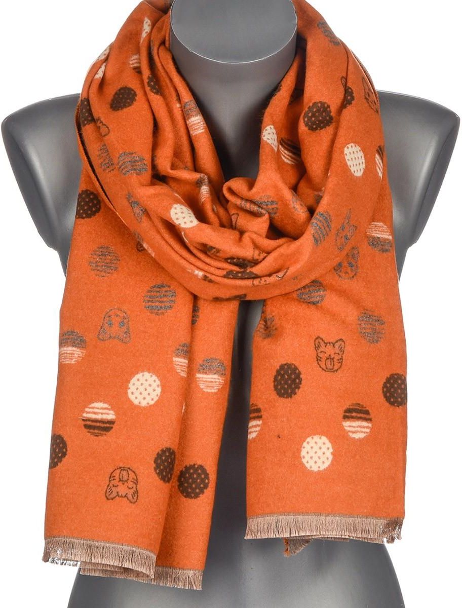 Pomarańczowy Duży Szalik Damski bawełniany ciepły dwustronny koty AX-123 Ząbki