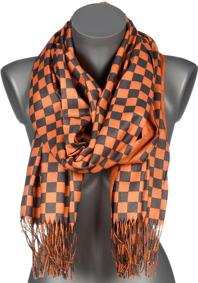 Pomarańczowy Duży Szalik Damski bawełniany ciepły szachownica AX-90 Ząbki
