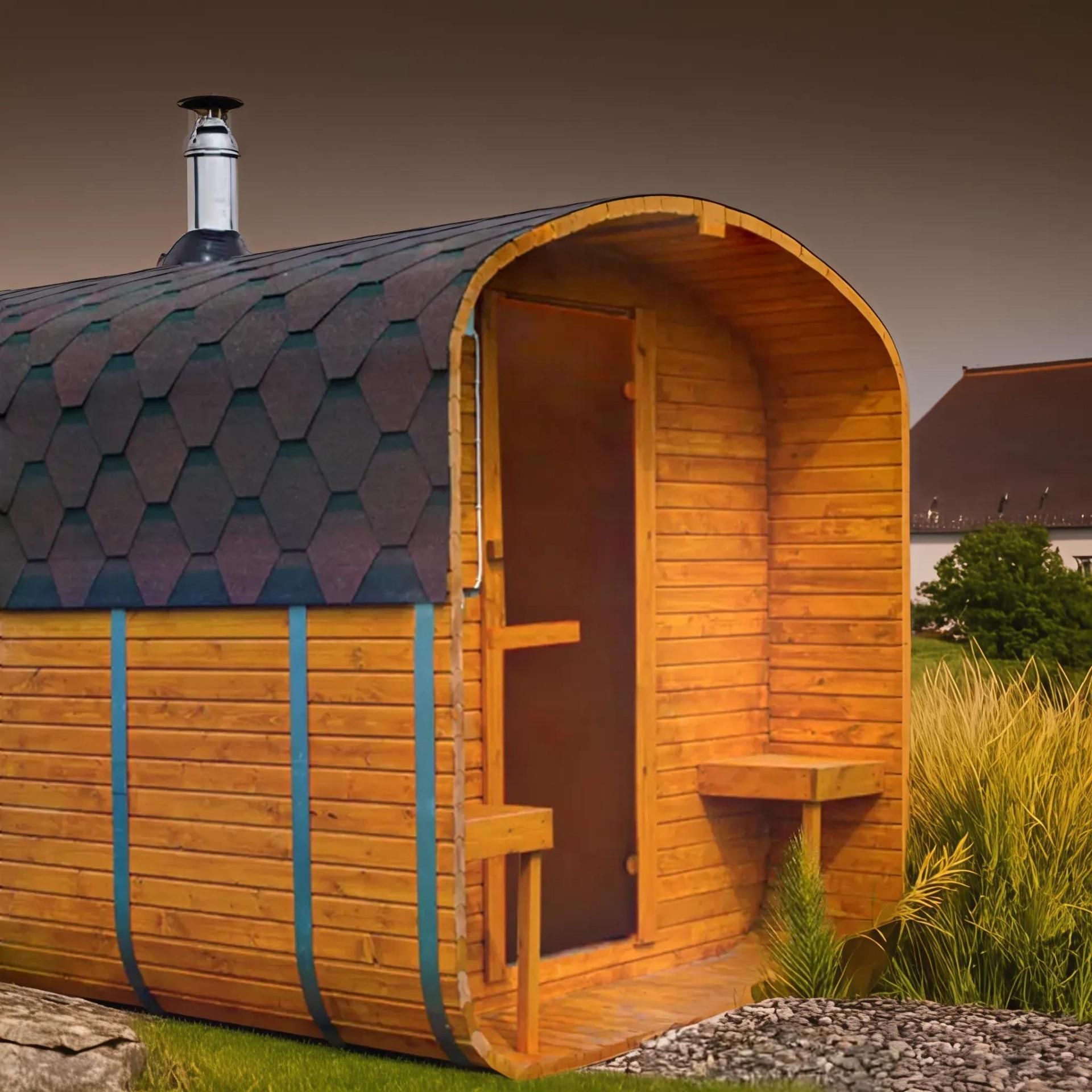 Sauna ogrodowa Quadro z Przebieralnią to kompleksowe rozwiązanie do saunowania, a kształt Quadro to maksymalne wykorzystanie przestrzeni. Zaprojektowana dla 4-6 osób do jednoczesnego saunowania, ale dodatkowa przebieralnia przed wejściem do łaźni to również miejsce i do odpoczynku. Doskonale sprawdzi się w przydomowym ogrodzie, tworząc przytulną strefę relaksu. Wyróżnia ją: Zewnętrzny przedsionek z krzesełkami który pozwoli odpocząć między sesjami ✓ Dwa izolowane pomieszczenia: Przebieralnia ze schowkami na ubrania oraz sama Łaźnia ✓ Forma QUADRO także pozwala na montaż ławek w dwóch poziomach- im wyżej siedzimy tym cieplej ✓ Ławki także w formie litery L mając piec po lewej czy prawej, nie tylko na wprost jak w przypadku beczki ✓ Ławki mają długość od 210cm, co pozwala położyć się nawet bardzo wysokim osobom ✓ Większa ilość osób która jednocześnie może przebywać w saunie o tej samej długości w porównaniu z sauną typu beczka lub Quadro o tej samej długości z daszkiem lub tarasem Wyobraź sobie wieczór w ogrodzie, gdzie natura koi zmysły, a Ty możesz w pełni się zrelaksować. Teraz dodaj do tego własną, prywatną saunę – miejsce, które przenosi komfort i luksus na zupełnie nowy poziom. Nasza sauna ogrodowa to nie tylko przestrzeń do odprężenia, ale także inwestycja w zdrowie, dobre samopoczucie i styl życia. Kompaktowy, przemyślany design oraz zastosowanie wysokiej jakości materiałów, takich jak skandynawski świerk czy trwałe drewno liściaste, sprawiają, że ta sauna idealnie wpisuje się w każde otoczenie. Dzięki solidnej konstrukcji i impregnacji, będzie służyć przez długie lata, niezależnie od warunków atmosferycznych. Wersja: Złożona, Zestaw do samodzielnego złożenia, a może Montaż na miejscu? Złożona Sauna jest złożona w naszym zakładzie, zaimpregnowana, a wszystkie zamówione elementy już są zamontowane, więc praktycznie odrazu po postawieniu na miejscu jest gotowa do użytku. Jest to najprostszy i najszybszy metod by mieć własną saunę. Natomiast musimy pamiętać że taką saunę już nie da się ręcznie zdjąć tylko za pomocą podnośnika, a odległość pomiędzy autem z którego trzeba będzie zdjąć saunę, a miejscem postawienia, nie może być większe niż 8m i musi być wolne od przeszkód. Zestaw do samodzielnego montażu Jest to sauna która dostarczana w elementach. Wersja dla osób które lubią majsterkować, przy okazji trochę oszczędzić, a może nawet i zrobić coś wspólnie z kolegami czy rodziną. Zestaw zawiera wszystkie niezbędne elementy do złożenia sauny, więc jedynie co potrzebne to czas, wysiłek oraz instrument. Atutami takiego zestawu napewno są: cena, możliwość postawienia sauny praktycznie w każdym miejscu, bezproblemowy rozladunek ręczny i liczne pochwały bliskich. Montaż na miejscu przez naszych fachowców Trudny teren, mało miejsca czy zwyczajnie nie ma przejazdu do miejsca gdzie trzeba postawić saunę? Nasi fachowcy przyjadą, przywiozą, rozładują, złożą, zamontują wszystkie zamówione elementy oraz zaimpregnują i zabezpieczą saunę. Jedynie czego będą potrzebowali to przygotowanego terenu plus jeden metr po obrysie sauny by swobodnie się poruszać dookoła oraz dostępu do gniazdka 230v. Czas montażu uzleżniony od warunków pogodowych i wybranego modelu, ale zazwyczaj nie przekracza 2 dni. Drewno: Standard czy Termodrewno, różnice i zalety Drewno Standard Standadowo używamy do budowy Własnych Saun drewna świerkowego ze skandynawii o klasie C24, odpowiednio wysuszonego w suszarniach. Jest to najlepszy rodzaj drewna w stosunku do świerka rodzimego czy sprowadzonych z innych krajów o bardziej łagodnej pogodzie. Dzięki bardziej powolnemu wzrostowi, drewno z krajów skandynawskich jest twardzsze co wplywa na jakość i długotrwałośc produktu końcowego. Drewno Termo tzw Thermowood Ten jak i pozostałe modele sauny dostępne również w wersji wykonanej z termo drewna. Będzie to na pewno dobrym wyborem który ma szereg zalet: Odporność na Czynniki Zewnętrzne Trwałość i Stabilność Ochrona Przed Grzybami i Mikroorganizmami Ekologiczność Premialna Estetyka i Elegancja Sauny Ogrodowe z Drewnem Termo: Inwestycja w Komfort i Trwałość, ale i większy wydatek Choć sauny z drewnem Termo będą nieco droższe niż ich standardowe odpowiedniki, to wartość, jaką oferują, jest bezcenna. Wybierając nasze sauny ogrodowe, wybierasz komfort, trwałość i estetykę na lata. Inwestuj w jakość i ciesz się relaksem na najwyższym poziomie. Więcej o Termodrewnie piszemy w jednym z artykułów w naszym Kompendium Wybór Pieca Pierwsza rzecz jaką należy określić, to czy elektryczny czy na drewno. Poniżej jest tabliczka w skrócie przedstawiająca cechy każdej wersji: Elektryczny Na drewno Cena X Ekonomiczny X Autonomiczny (niezależny od dostaw energii) X Moc* X Szybciej nagrzewa się X Dłużej utrzymuje ciepło** X Bezobsługowy X Rozmiar X *Porównując piece z proponowanych modeli Harvia KIP/Cilindro/Vega oraz Harvia M3SL i Etna **Porównanie modeli Harvia KIP/Vega vs Etna12 Wybieram Elektryczny, co muszę jeszcze wiedzieć? Zalecane piece elektryczne do tej sauny to piece o mocy od 6kW, natomiast nie ma potrzeby by wybierać piec mocniejszy niż 9kW. Rzecz jasna że mocniejszy piec to szybsze nagrzewanie sauny i lepsza efektywność nawet w gorszych warunkach atmosferycznych na zewnątrz. Natomiast warto pamiętać że przyłącze na działce ma odpowiadać poborowi mocy pieca. Wybór modelu zależy tylko i wyłącznie od upodobań gdyż system działania jest podobny, a różnice są w mocy, wyglądzie oraz załadunku kamieni która przekłada się jedynie na kumulację. Lubię klasykę, wybieram piec na drewno System działania pieca na drewno tego czy innego modelu jest bardzo podobny, podstawową różnicą miedzy rodzajem pieca to załadunek od wewnątrz lub zewnątrz. Bazując 