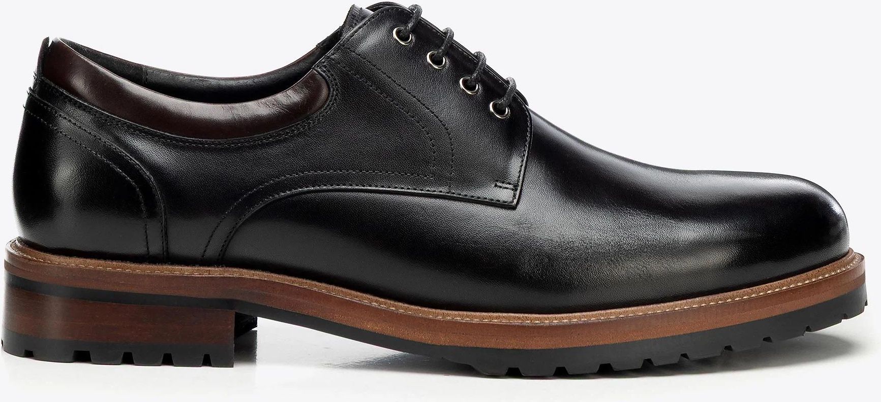 Opinie Skórzane półbuty na podeszwie track czarne Ząbki