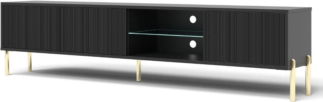 Szafka RTV Oslo czarna 175 cm ryflowany front, złote nóżki, nowoczesna Ząbki