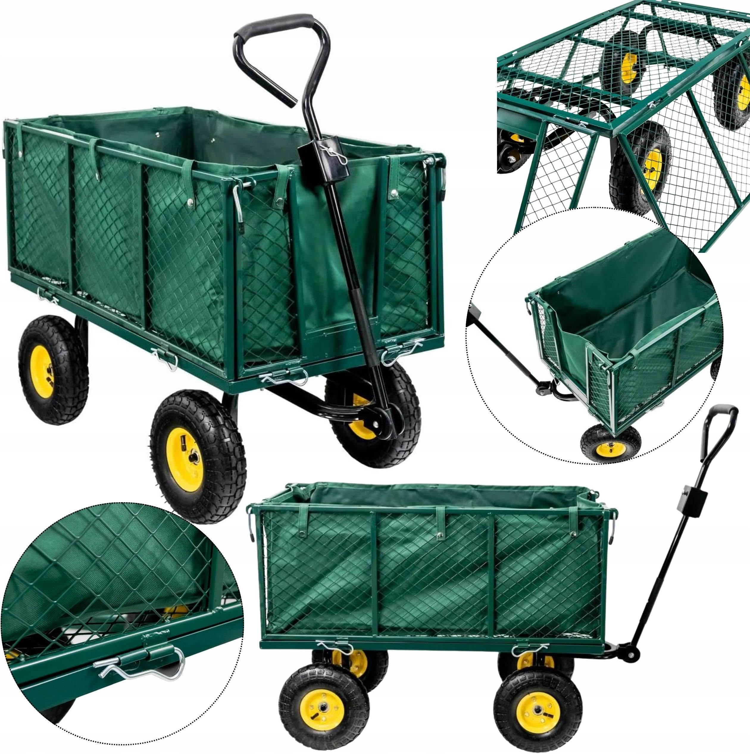 Wózek ogrodowy transportowy duży składany MEGA-M przyczepka XXL 3w1 500 kg Wózek MEGA-M to idealny pomocnik w ogrodzie, na działce i wokół domu. Dzięki stalowej konstrukcji i ładowności do 500 kg, poradzi sobie nawet z najcięższymi zadaniami. MOCNA I TRWAŁA KONSTRUKCJA Wykonany z lakierowanej proszkowo stali nierdzewnej – odporny na korozję i zabrudzenia. Udźwig do 500 kg gwarantuje bezpieczny transport ciężkich materiałów. WYGODNY I FUNKCJONALNY Otwierane burty ułatwiają załadunek i rozładunek. Pojemna komora (96 × 51 × 39 cm) pomieści narzędzia, ziemię, drewno czy liście. Pokrowiec ochronny zabezpiecza sypkie materiały podczas transportu. BEZ PROBLEMÓW NA KAŻDYM TERENIE Duże, pompowane koła (26 cm) zapewniają stabilność i płynną jazdę nawet po nierównym gruncie. Długi dyszel (85 cm) pozwala łatwo manewrować, nawet z pełnym ładunkiem. SPECYFIKACJA Wymiary: 96 × 51 × 72 cm Maks. obciążenie: 500 kg Koła: pneumatyczne 26 cm Materiał: stal malowana proszkowo Kolor: ciemnozielony Waga: 19 kg 🌿 MEGA-M – Twój niezastąpiony partner do ciężkiej pracy w ogrodzie!