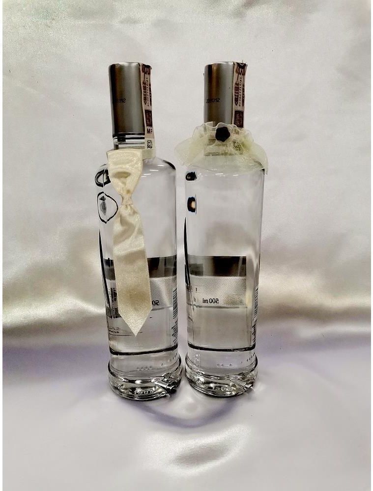 Weselny zestaw krawatów i podwiązek na butelki: Zestaw składa się z : 6 krawatów w kolorze ecri uszytych z atłasu. 6 podwiązek uszytych z tiulu w kolorze ecriozdobionych różą (ecri bądź bordowa) Komplet na 12 butelek. Przy zamówieniu prosimy o podanie koloru różyczek, w przypadku braku informacji wysyłamy losowo.