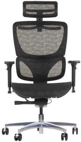 Ergonomiczne krzesło obrotowe/biurowe ErgoNew S1A(2) - wysuw siedziska, regulowane oparcie, podłokietniki i zagłówek, siedzisko siatkowe, podstawa alu Ząbkowice Śląskie