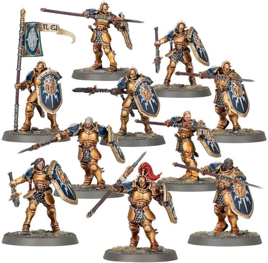 By bellowing litanies of faith, they are able to conjure arcs of lightning that jump between their shields and spears, blasting charging enemies with the fulgurant power of Azyr. Once they have planted their flag on a point that they have elected to defend, these stalwart warriors are nearly …