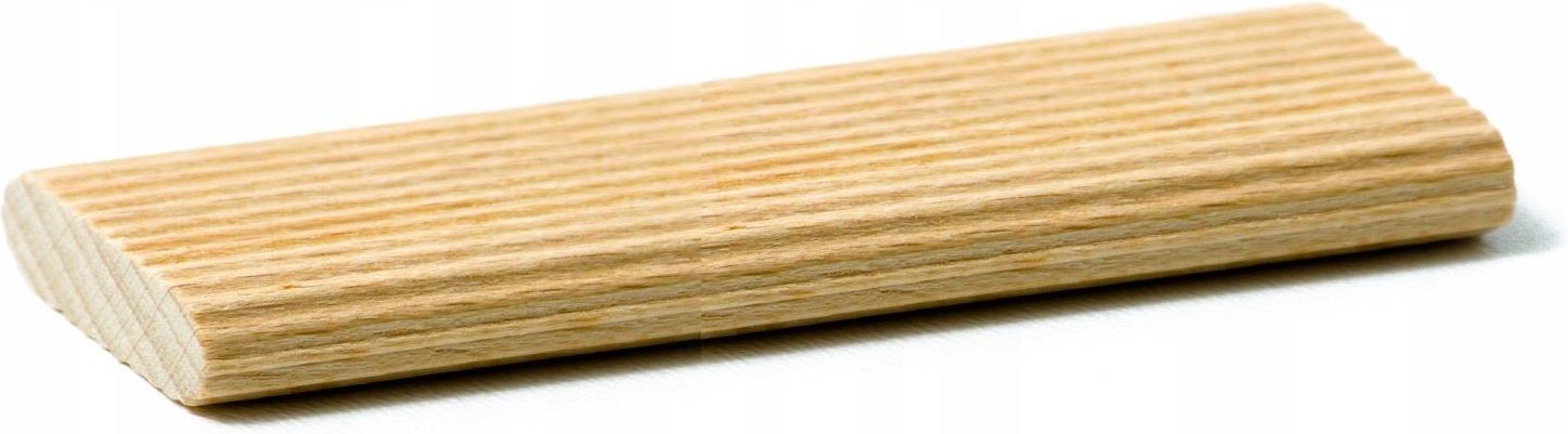 Solidnie i precyzyjnie wykonane, ryflowane łączniki bukowe 8x80 (opakowanie 95 szt.). Właściwości: ✅ Wymiary: 8x22x77 mm ✅ Ilość w opakowaniu: 95 szt. ✅ zastosowanie - łączenie drewna i materiałów drewnopochodnych ✅ Materiał wykonania: drewno bukowe ✅ Wyprodukowano zgodnie z normą DIN 68-150 Wszystkie oferowane przez naszą firmę produkty drewniane są wyprodukowane z dokładnie wysuszonego drewna. Aby zachować ich doskonałe właściwości są przechowywane w odpowiednich dla drewna warunkach co sprawia, że posiadają stałą wilgotność i wymiary. Łączniki z żeberkami wzdłużnymi zapewniają optymalne dopasowanie i w przeciwieństwie do tradycyjnych, okrągłych kołków w 100 % zabezpieczają przed przekręceniem już od pierwszego użytego elementu. Gęste ryflowanie na etapie produkcji pozwala na dokładne rozprowadzenie kleju wewnątrz łączonych elementów. Płaskie kołki ryflowane pozwalają na szybkie, mocne i precyzyjne łączenie elementów drewnianych i drewnopochodnych. Mają typowe rozmiary więc można użyć każdej dostępnej na rynku frezarki do frezowania otworów, w których będą umieszczane.