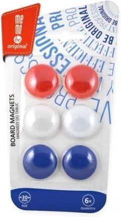 Magnesy do tablic MemoBe, średnica: 30 mm, 6 szt. Marka: MemoBe Magnesy do tablic - zestaw 6 okrągłych magnesów do tablic i innych powierzchni magnetycznych. Plastikowa obudowa nadaje magnesom estetyki. Doskonałe wsparcie podczas prezentacji informacji i grafik. W zestawie 6 szt. magnesów o śr. 30 mm, w klorach: czerwone białe niebieskie (po 2 sztuki każdego koloru) Marka MemoBe Marka MemoBe została założona w 1993 roku i dzięki intensywnemu rozwojowi zajmuje kluczowe miejsce wśród producentów z branży artykułów biurowych i szkolnych w Polsce. Każdy produkt MemoBe to gwarancja wysokiego komfortu pracy podczas codziennego użytkowania. W produkcji wykorzystywane są tylko materiały wysokiej jakości, które pozwalają na udzielenie okresu gwarancji nawet do 25 lat. Tablice wiszące i wolno stojące posiadają Certyfikat Zgodności i spełniają wymagania określone w normie PN-EN 14434:2010. Marka MemoBe oferuje szeroki wybór produktów: tablice korkowe, tablice suchościeralne magnetyczne, tablice ceramiczne i szklane, tablice kredowe, tablice filcowe, tablice obrotowo-jezdne i flipcharty stojaki i potykacze ekrany projekcyjne i wiele innych.
