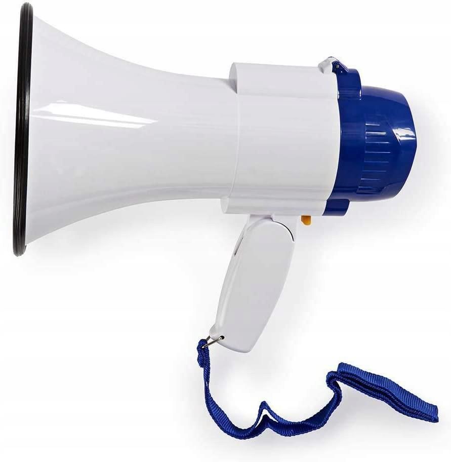 Megafon Nedis 250m Nagrywanie 115dB Niebieski/Biały Megafon Nedis to kompaktowe i efektywne narzędzie, które umożliwia przekazywanie komunikatów głosowych na dużą odległość. Dzięki zintegrowanemu wzmacniaczowi o mocy 10 W, urządzenie osiąga zasięg do 250 metrów, co sprawia, że Twój głos dotrze do szerokiego grona odbiorców. Jest to idealne rozwiązanie na wydarzenia plenerowe, imprezy sportowe, akcje ratownicze czy sytuacje awaryjne. Jedną z kluczowych funkcji tego modelu jest możliwość nagrywania komunikatów trwających do 10 sekund. Nagranie można wielokrotnie odtwarzać, co eliminuje potrzebę powtarzania tych samych informacji. Dodatkowo megafon jest wyposażony w głośny sygnał alarmowy, który pozwala szybko zwrócić uwagę otoczenia w sytuacjach, które wymagają natychmiastowej reakcji. Megafon Nedis oferuje regulację głośności, co pozwala dostosować siłę dźwięku do warunków otoczenia. Jego kompaktowa konstrukcja z ergonomicznym, składanym uchwytem oraz dołączonym paskiem na ramię sprawia, że urządzenie jest łatwe w transportowaniu i przechowywaniu. Niska waga oraz solidne wykonanie gwarantują wygodne użytkowanie nawet przez dłuższy czas. Dzięki swojej funkcjonalności, megafon Nedis sprawdza się w różnych aplikacjach – od wydarzeń masowych po ćwiczenia ewakuacyjne czy koordynację dużych grup osób. Nowoczesny wygląd w niebiesko-białej obudowie oraz zasilanie za pomocą czterech baterii typu D umożliwiają użycie w terenie bez potrzeby dostępu do źródła prądu. Bateria: Zasilanie bateryjne | 4 x D/LR20 Funkcje dodatkowe: Funkcja nagrywania | Regulacja głośności | Wbudowana syrena Kolor: Niebieski | Biały Materiał: Plastik | Tworzywo sztuczne Mikrofon: Tak, wbudowany Moc głośników: 10W Napięcie: 6V Poziom hałasu: 115 dB Prąd wejściowy/wyjściowy: 0.5A Zasięg: 250 metrów Kod Produktu: MEPH150WT