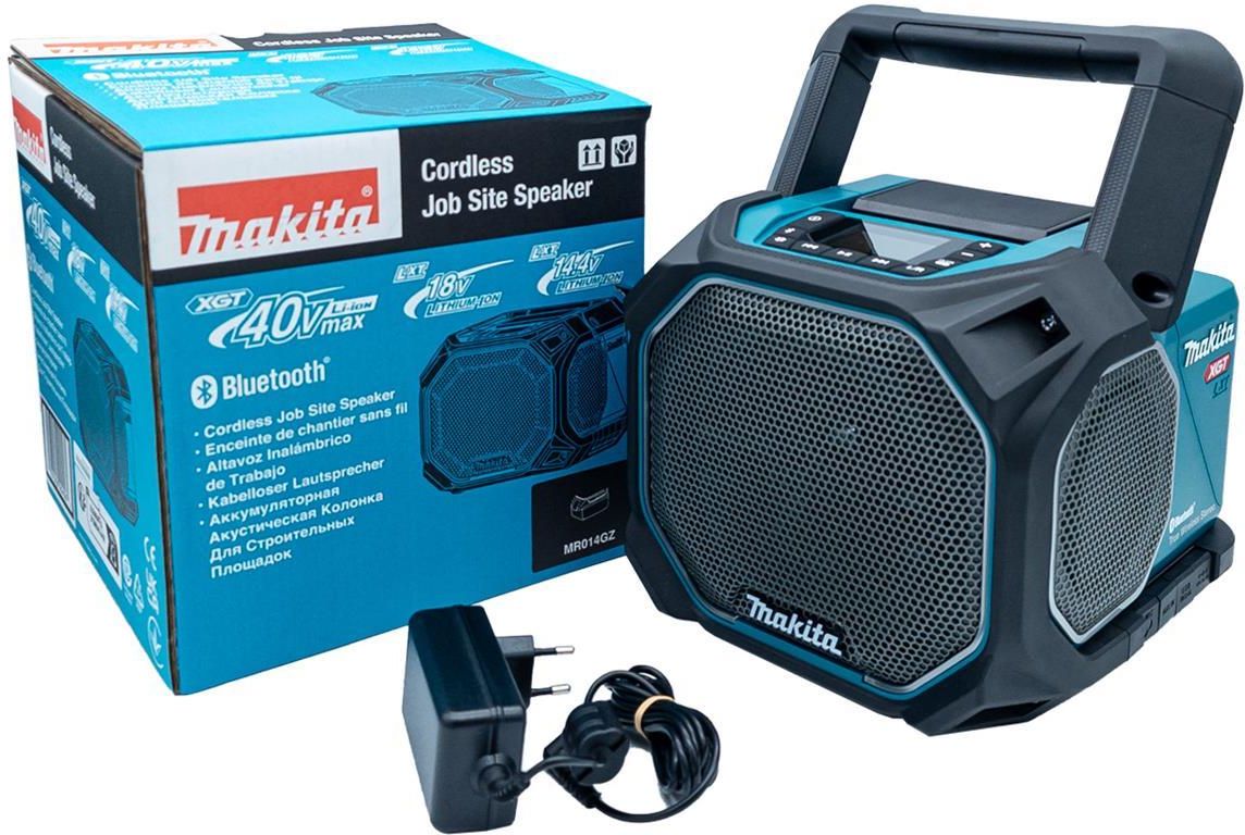 Głośnik bezprzewodowy Bluetooth, USB, 10,8V/14,4V/18V, Makita [MR014G]: trzy duże głośniki komponentowe zapewniają mocny i głęboki bas, Technologia Bluetooth w wersji 5.1, klasy 1 (AD2P), o wysokiej wydajności kompresji umożliwiają odtwarzanie dźwięku wysokiej jakości, zasięg gwarantowany wynosi 30 m, możliwy do 100 m w zależności od otoczenia wyposażony jest w korektor pozwalający na wybór jednego z sześciu trybów poprawienia dźwięku oraz możliwość indywidualnej regulacji wysokich, średnich i niskich tonów w celu uzyskania pożądanej jakości dźwięku, obsługę i sterowanie głośnikiem ułatwia kolorowy ekran LCD, podświetlane przyciski sterujące oraz duży rozmiar znaków, który ułatwia odczytywanie wyświetlanych informacji, wyświetlacz LCD wyświetla informacje związane z dźwiękiem takie jak ustawienie korektora, tytuł utworu, nazwa wykonawcy, tytuł albumu itd., głośnik wyposażony jest w dedykowane gniazdo mikrofonowe, posiada także port USB do ładowania urządzeń mobilnych (typ A; DC5V/2,4 A), w górnej części obudowy głośnik posiada miejsce do ustawienia smartfona w pionie, podpierając do uchwytem głośnika ustawionym pod kątem, posiada możliwość dekoracyjnego oświetlenia linią LED z możliwością zmiany trybu oświetlenia, istnieje możliwość sparowania 10 głośników z jednym urządzeniem mobilnym, głośnik posiada wytrzymałą obudowę, klasa izolacji IP65 zapewnia pyłoszczelność i odporność na ulewny deszcz, może być zasilany akumulatorami Makita Li-Ion lub zasilaczem AC, głośnik dostarczany jest z zasilaczem sieciowym, bez akumulatora i ładowarki, pakowany w kartonie. PARAMETRY TECHNICZNE GŁOŚNIKA MAKITA [MR014G] napięcie akumulatorów: 14,4V / 18V / 40V max, obsługiwane serie akumulatorów: LXT / XGT, typ akumulatorów: Li-Ion, wersja Bluetooth 5,1, zasięg transmisji: do 30 m (możliwy do 100m), moc wyjściowa 18V: 20 W, czas pracy: - na akumulatorze 18V / 3,0 Ah: 16 h, - na akumulatorze 18V / 4,0 Ah: 23 h, - na akumulatorze 18V / 5,0 Ah: 30 h, - na akumulatorze 18V / 6,0 Ah: 36 h, - na akumulatorze 40V max/ 2,0 Ah: 15 h, - na akumulatorze 40V max/ 4,0 Ah: 32 h, klasa szczelności: IP65, wymiary (D x S x W): 243 x 235 x 205 mm, waga (EPTA):3,8 kg WYPOSAŻENIE GŁOŚNIKA MAKITA [MR014G] zasilacz sieciowy [ SE00001249], instrukcja obsługi