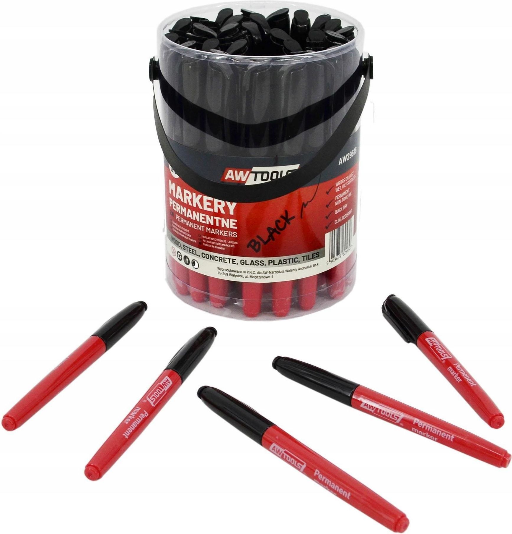 Marker czarny cienki budowlany permanentny zestaw markerów 45szt w pudełku Producent: AWTOOLS Kod produktu: AW29616 Ostra, punktowa końcówka odporna na nacisk, nie odkształca się, pozostawia trwałe, szybkoschnące oznaczenia. Przeznaczone do pracy na większości powierzchni: betonie, miedzi, drewnie, …