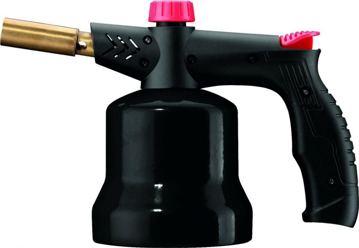 Metalowy korpus z ergonomiczn rkojeci oraz mosin dysz. Zapon piezoelektryczny zapewniajcy natychmiastowy pomie. Regulowane pokrto kontroli pomienia. Zasilany nabojami gazowymi przebijanymi o pojemnoci 190 g. Zawr do uzupeniania gazu na spodzie. Moliwo pracy w kadej pozycji pod ktem 360. Przeznaczony do pracy w kuchni (opalanie, karmelizowanie, rozmraanie), rozpalania (kominki, grille) oraz lutowania i spawania rur, usuwania farb itp. Dane techniczne: Moc: 1,7 kW Wysoko cakowita: 165 mm rednica podstawy: 110 mm Zapon: piezo Max temp pracy: 1,300 C Zuycie gazu: 123 g/h Waga: 450 g