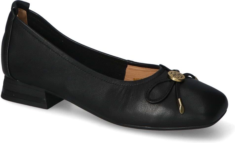 Eleganckie baleriny renomowanej marki Loretta Vitale:- wykonane z najlepszej jakości skóry naturalnej licowej - wnętrze pokryte zostało skóra ekologiczną aby zapewnić komfort podczas użytkowania - wkładka wewnętrzna wykonana ze skóry naturalnej - obcas o wysokości 3 cm zapewnia odpowiednią stabilizację - czarny kolor, ozdobna kokardka i modny fason zachwycą każdego!