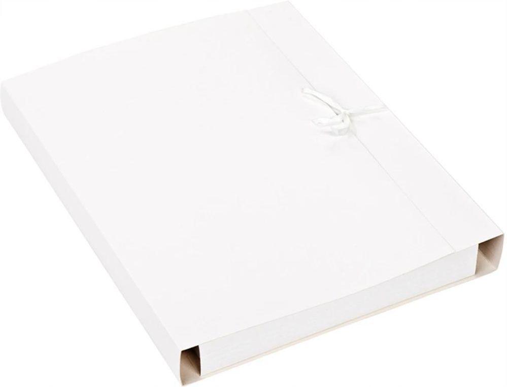 Teczka wykonana z najwyższej jakości kartonu celulozowego spełniającego normę ISO 9706 i wymagania określone w rozporządzeniu MKiDN z dnia 20.10.2015r. wymiary 320 x 250 x 50 format A4 gramatura 300g/m2 pH >7,5 rezerwa alkaliczna >0,4 mol/kg liczba Kappa <5 100% celulozy certyfikat ISO 9706 3 wewnętrzne klapy zabezpieczające tasiemka bawełniana wykonana z wysokiej jakości niebielonej surówki bawełnianej tasiemki dostosowane długością do szerokości grzbietu