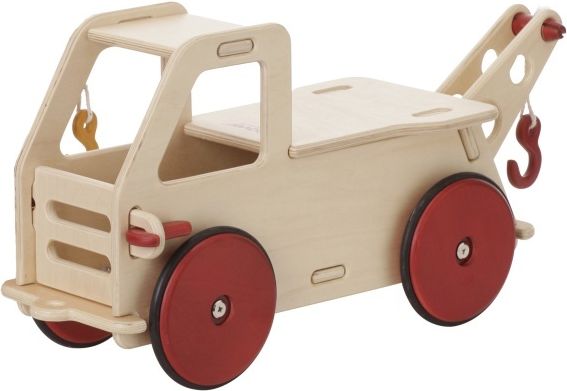 Drewniany jeździk urzeka dokładnym wykonaniem zachowanym w stylu retro. Zabawka z serii Classic Big to komfortowe rozwiązanie zapewniające świetną zabawę dla dziecka. Przywołaj wspomnienia z dzieciństwa, oczaruj swoją pociechę zabawką sprzed lat i odkryj na nowo dziecięcy świat. Tylko naturalne materiały Zabawka w całości wykonana jest z naturalnej okleiny z drewna lipowego o grubości 10 mm oraz drewnianych kół zakończonych gumową taśmą. Ciężarówka jest pokryta ekologiczną farbą z atestem. Nie ma więc obawy o substancje uczulające Twoją pociechę. Podłoże antypoślizgowe Masz już dość głośnych zabawek? Zastosowane koła antypoślizgowe zmniejszają uciążliwy hałas. Dodatkowo rozwiązanie chroni podłogi naszego mieszkania oraz samą zabawkę przed zużyciem. Jak wiesz, każdy urwis porusza się we własnym tempie. Obicia kół obniżają maksymalną prędkość jeździka oraz pozwalają na jego indywidualne dostosowanie do użytkownika. Zabawka nie traci przy tym na łatwości prowadzenia. Solidne wykonanie Jeździk jest w pełni stabilny i nie przechyla się. Zamontowane w samochodzie koła zabezpieczają dodatkowo stelaż przed przewróceniem. Dziecko może bez obaw wsiadać na niego i jeździć. Pojazd porusza się zarówno do przodu jak i do tyłu. Dziecko, które uczy się jeździć stara się utrzymać równowagę oraz stabilność. Jednak nie zawsze wszystkim wychodzi to od razu. Dlatego też wszystkie krawędzie dźwigu zostały zaokrąglone, by zadbać o bezpieczeństwo malucha. Solidne wykonanie zwiększa wartość zabawki oraz buduje zaufanie dzieci i ich rodziców do marki. Pojazd posiada wyjmowaną klapke od schowka, która pełni funkcję siedzenia w przypadku jeździka dla dziecka. Gdy dziecku znudzi się jazda, może zacząć przewozić lalki i inne swoje zabawki w naczepie pojazdu. Przy zabawie można też zdjąć tylną klapkę, by stworzyć samochód bez burty do przewozu długich elementów. Opracowany zgodnie z potrzebami dzieci Zabawkę stworzono na podstawie zachowań dzieci oraz ich potrzeb. Duńscy specjaliści przeprowadzili badania reakcji na zmysły dziecka. Skupili się na tym co przykuwa największą uwagę dzieci. Czym lubią się bawić. Jakiego koloru zabawka przyciąga wzrok. Z jakiego jest materiału, że sięgają po nią jako pierwszą. W czasie tworzenia zabawki producenci opierali się na zebranych informacjach. Detale zabawki zostały dopracowane w taki sposób, aby służyła niejeden raz. Korzyści z zabawy Zadbaj o prawidłowy rozwój swego dziecka. Przewożąc lalki czy samochodziki w przyczepie maluch łączy zabawę z nauką. Zabawa samochodami rozwija wyobraźnię oraz zachęca do odkrywania i ćwiczenia umiejętności motorycznych. Jeździk rozwija integrację sensoryczną oraz stymuluje zmysły dziecka. Zabawka zachęca również do podejmowania kolejnych aktywności ruchowych. Montaż zabawki Jeździk maluszka oferowany przez markę Moover jest dostarczany w płaskich kartonach z elementami do złożenia. Firma zastosowała specjalny system zatrzasków Moover, który ułatwi oraz przyśpieszy składanie zabawki. Do montażu nie przydadzą się żadne narzędzia, a cały proces trwa zaledwie kilka minut. Postępuj zgodnie z instrukcją dołączoną do zestawu. Zabawka nie posiada małych elementów, dlatego sprawdzi się do zabawy dla dzieci powyżej 12 miesiąca życia. Trochę o samej marce Duńska firma Moover specjalizuje się w produkcji drewnianych zabawek. Zaprojektowane na podstawie zachowań dzieci, opracowane by rozwijały i uczyły. Producent posiada różnego rodzaju meble dla lalek, samochody dla chłopców czy układanki oraz zawieszki dla maluchów. Przemyślane w każdym szczególe, oryginalnie zaprojektowane oraz solidnie wykonane posłużą niejednemu pokoleniu. Moover spełni Twoje oczekiwania.