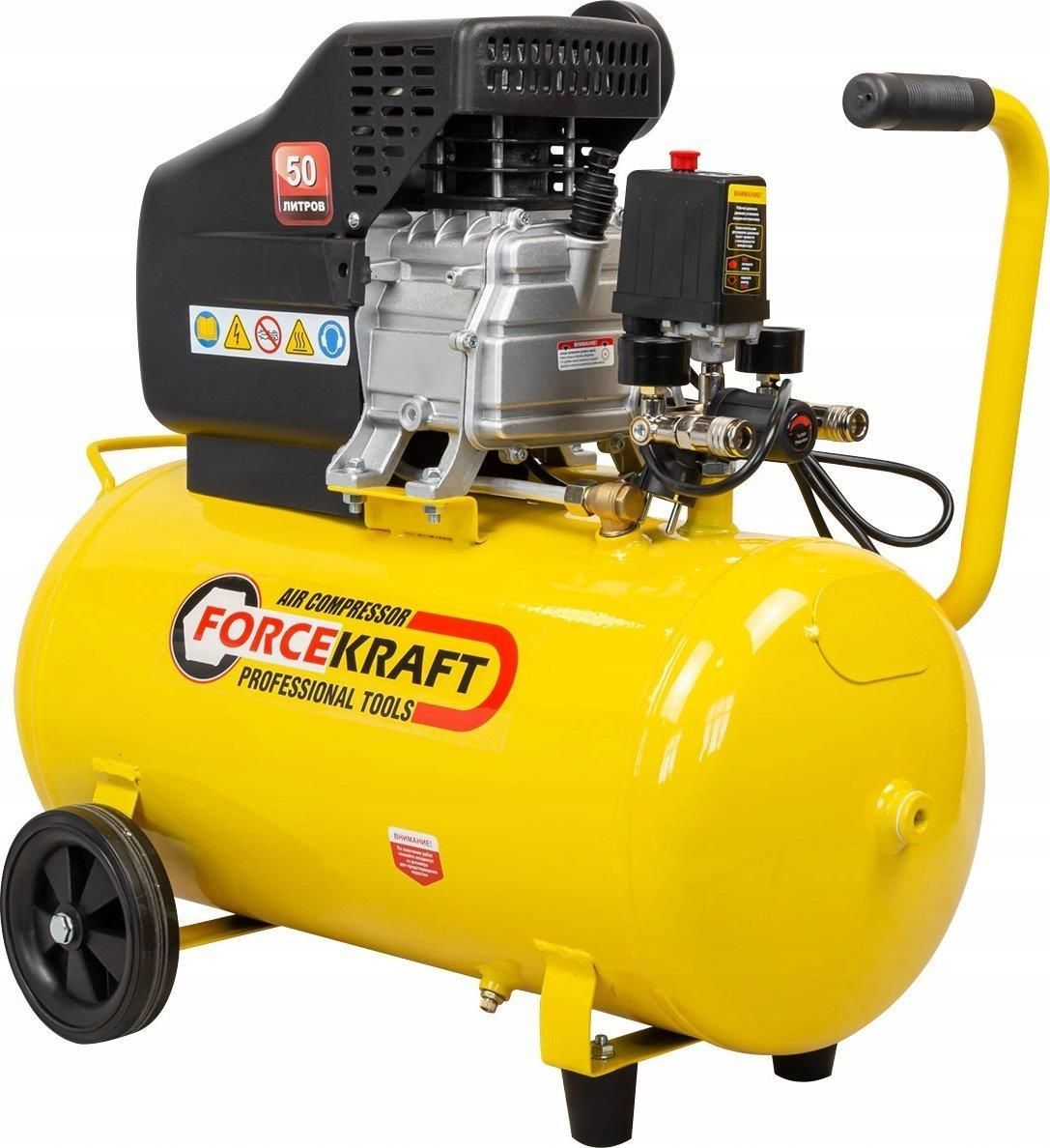 KOMPRESOR OLEJOWY 50 LITRÓW Forcekraft FK-BM25/50(54662) Wyciszony kompresor bezolejowy Forcerkraft ze zbiornikiem 50L to urządzenie wszechstronne, ekonomiczne i łatwe w użyciu. Poziom hałasu to jedynie 81 decybeli. Idealny do użytkowania w domu lub mieszkaniu. Sprężarka ta sprawdza się niezawodnie w różnorodnych warunkach pracy. Stworzona dla najbardziej wymagających majsterkowiczów, rzemieślników oraz użytkowników profesjonalnych. Przetestowany w różnorodnych warunkach pracy. Kompaktowy i praktyczny kompresor 50L doskonale sprawdza się przy w systemach automatycznej kontroli przemyśle mechanicznym, chemicznym, farmaceutycznym pompowaniu kół do prób ciśnieniowych malowaniu niedużych powierzchni czyszczeniu trudno dostępnych miejsc, szczelin przedmuchiwaniu i czyszczeniu urządzeń komputerowych pozyskiwaniu sprężonego powietrza dla drobnych narzędzi pneumatycznych, aerografów, gwoździarek... PARAMETRY TECHNICZNE model: Forcekraft FK-BM25/50(54662) pompa dwucylindrowa, bezolejowa moc szczytowa :2 KM / 1500W Silnik: elektryczny, chłodzony powietrzem Ciśnienie maksymalne pompy: 9 bar Ciśnienie robocze: 8 bar Moc silnika: 1,5 KW/ 2,04 KM Częstotliwość: 50Hz Pojemność zbiornika: 50L Napięcie: 230V Żeliwne cylindry: Tak