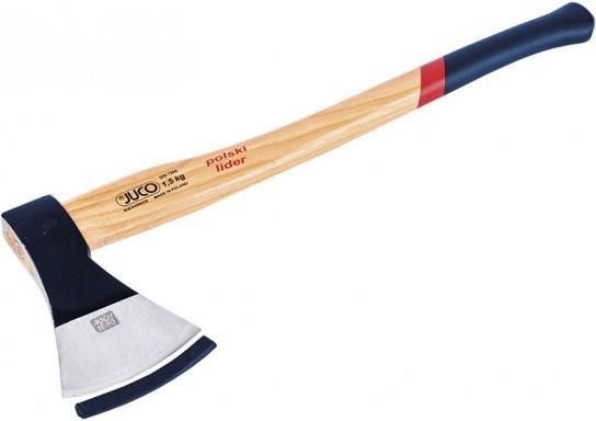 Juco Siekiera LUX 2,5kg T1093 Siekiera marki Juco wysokiej jakości, przeznaczona do intensywnej pracy w ogrodzie i na budowie. Jest trwała oraz skuteczna w pracy. Część metalowa siekiery jest w całości kuta, szlifowana i polerowana. Dodatkowo elementy robocze zostały hartowane indukcyjnie. Trzonek wykonany z drewna jesionowego, dodatkowo lakierowany. Osadzenie trzonka zabezpieczone klinem plastikowym i tulejką metalową. Długość całkowita: 900mm Waga obucha: 2,5kg Waga całkowita: 3,5kg Norma: DIN 7294