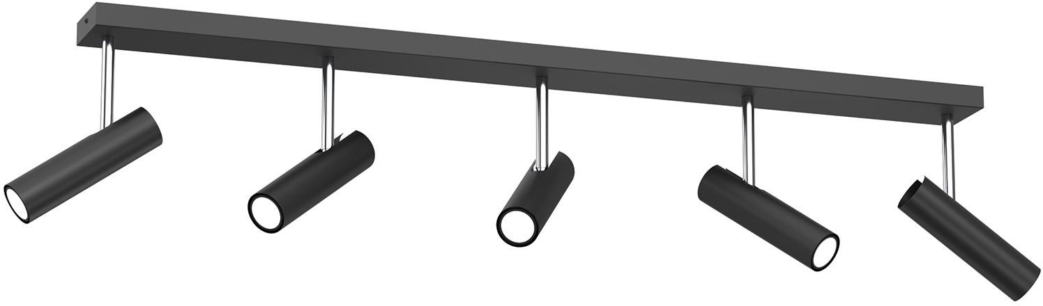 Lampa sufitowa biała mat chrom reflektory tuby 5 pkt listwa 120 cm Luminex Parametry techniczne Marka: Luminex kod producenta: 4444 Kolekcja: Axion Liczba punktów świetlnych: 5 Źródło światła: GU10 Maksymalna moc żarówki: 8W Kolor: czarny mat / chrom Żarówka: brak żarówek w zestawie Kształt: listwa …