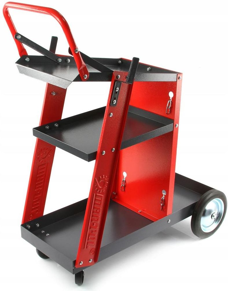 Stabilny wózek spawalniczy. Wózek przeznaczony do przewozu spawarek wraz z butlą i akcesoriami. Kompatybilny ze wszystkim spawarkami MMA, MIG, TIG. Przy spawaniu z butlą nie musimy jej ręcznie przenosić. Dodatkowe półki pomieszczą potrzebne podczas pracy akcesoria, tak aby były zawsze pod ręką. …