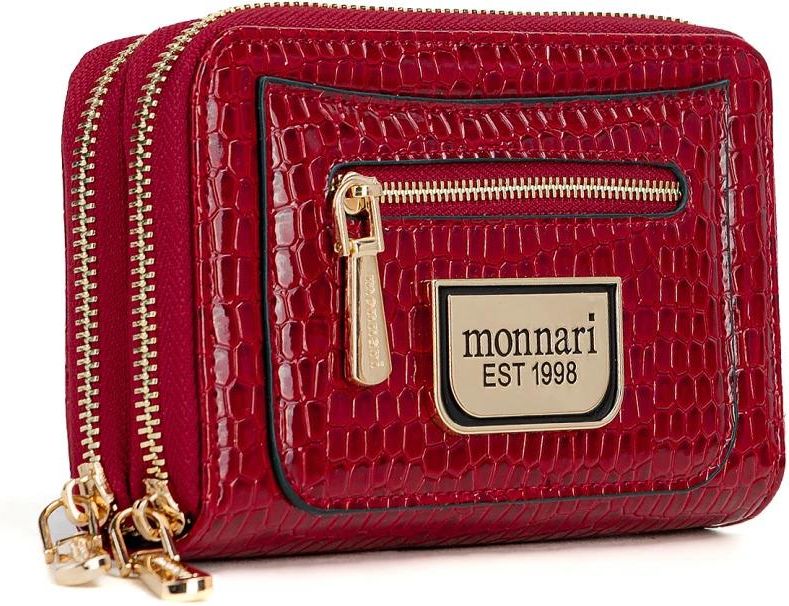 Portfel damski Monnari czerwony lakier wąż – elegancki portfel ze skóry ekologicznej, dwukomorowy i praktyczny Zabłudów