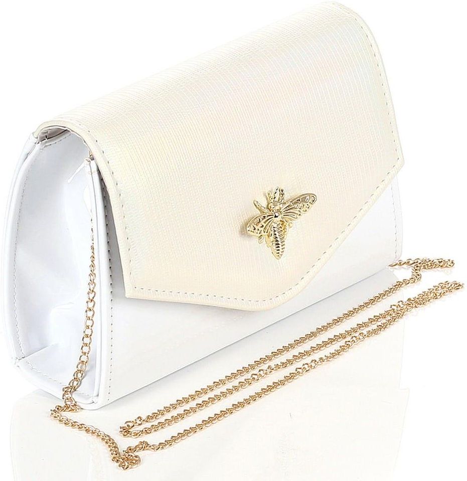 Salvare Zjawiskowa biała kopertówka na łańcuszku z mieniącą się klapą WAŻKA Zabłudów