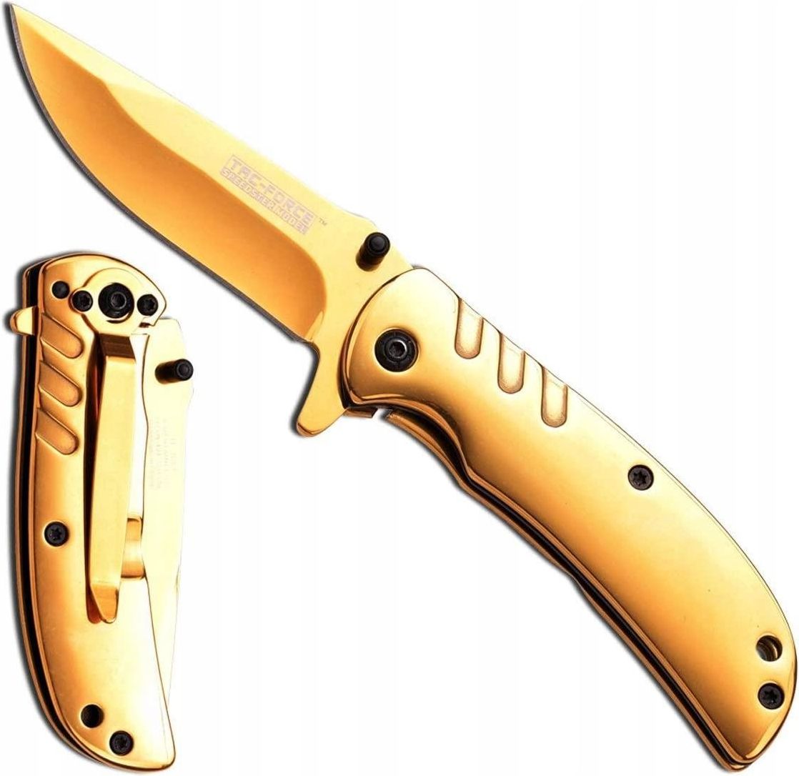 Tac Force TF-847GD Nóż sprężynowy Długość w stanie zamkniętym 89 mm Ostrze 70 mm ze stali nierdzewnej, grubość 2,3 mm Uchwyt stalowy Kieszonkowy klips