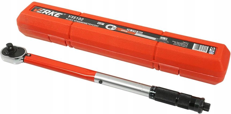 KLUCZ DYNAMOMETRYCZNY 1/2", 28-210 Nm VERKE Klucz dynamometryczny 1/2" 28-210 Nm Klucz wykonany z solidnej stali chromowo-wanadowej gwarantującej wysoką odporność. Klucz dynamometryczny jest precyzyjnym narzędziem pomiarowym momentu siły. Klucz składa się z głowicy z kwadratowym trzpieniem i …