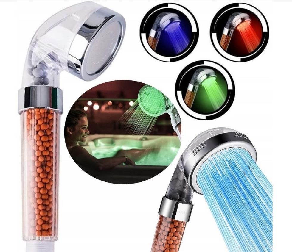 Oferowana słuchawka prysznicowa idealnie sprawdzi się w każdym domu oraz ożywi wnętrze łazienki. Siedem kolorów stworzy wyjątkowy nastrój, a kamienie mineralne przefiltrują wodę, aby w pełni cieszyć się domowym SPA. Słuchawka jest łatwa w instalacji, wystarczy przykręcić ją do węża prysznicowego. Światło LED świeci siłą grawitacji wody w słuchawce.Produkt: Słuchawka prysznicowa LEDStan: Fabrycznie nowyZasilanie: WodneWymiary: 20,5x6,5 cmKod produktu: 00031H4UWAGA: opakowanie zastępcze. Zalety słuchawki: stylowy, nowoczesny wygląd,7 kolorów podświetlenia LED,naturalny filtr,brak zasilania elektrycznego,łatwa instalacja.Światło LED zapala się automatycznie zaraz po odkręceniu kranu. Kolory zmieniają się samoistnie i płynnie podczas zażywania kąpieli tworząc niesamowity nastrój. Wbudowana filtracja oczyszczająca z koralików mineralnych usuwa metale ciężkie, chlor, bakterie i zanieczyszczenia, poprawiając jakość wody. Dzięki takiemu rozwiązaniu skóra oraz włosy będą gładsze i bardziej miękkie, a sam prysznic stanie się przyjemniejszy.
