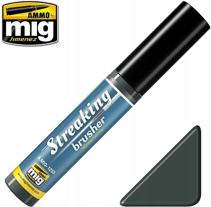 Ammo by Mig: Streaking Brusher - Winter Grime Jeden z najpopularniejszych produktów firmy Ammo zamknięty w nowym, innowacyjnym opakowaniu, które sprawi, że cały proces dodawania efektów smug stanie się jeszcze prostszy! Produkty z serii Ammo: Streaking należy nałożyć na model, a następnie …