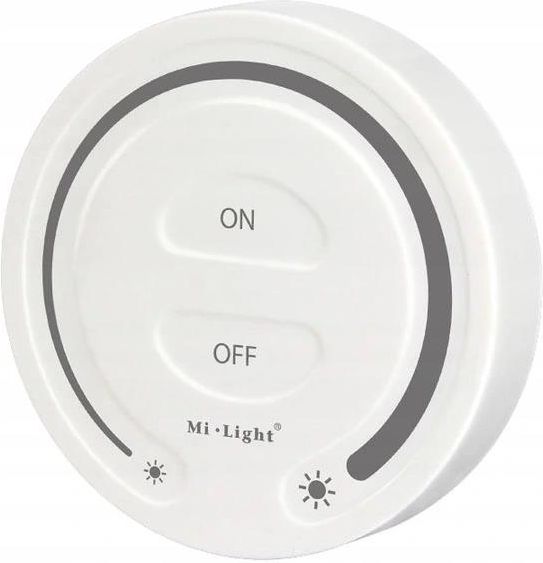 STEROWNIK LED NAŚCIENNY MONO MILIGHT FUT087 BIAŁY Pilot naścienny FUT087 Mi-Light jest urządzeniem przeznaczonym do obsługi oświetlenia LED MONO, CCT i RGB+CCT. Pozwala na płynną regulację jasności światła białego. Komunikacja z produktami odbywa się bezprzewodowo. Urządzenie zasilane jest bateryjnie 2 x AAA, przeznaczone do instalacji natynkowej za pomocą dołączonej taśmy dwustronnej lub śrub. Radiowa łączność jaką cechuje się panel naścienny, umożliwia bezprzewodowe sterownie na poziomie 30 metrów w terenie otwartym. Komunikacja oparta na częstotliwości rzędu 2,4GHz zapewnia stabilną oraz zsynchronizowaną pracę zastosowanego oświetlenia LED. Pilot współpracuje z kontrolerem FUT036, FUT036S Wymiary Fi 80 x 17mm Zasilanie 3V (2 x AAA) Zasięg 30m Pobór w trybie Stand-by 10uA FUNKCJE URZĄDZENIA Włączanie / wyłączenie podłączonego oświetlenia LED Ściemnianie / rozjaśnianie podłączonego oświetlenia LED Natychmiastowe zmniejszenie natężenia jasności (tryb nocny) Funkcja trybu nocnego, umożliwia natychmiastowe zmniejszenie natężenia oświetlenia LED za pomocą jednego pola dotykowego. Tryb ten idealnie sprawdzi się w pomieszczeniach gdzie panuje całkowity zmierzch, zapobiegając nas przed oślepieniem podłączonego oświetlenia. Ponadto w trybie nocnym, sterownik blokuje zmianę poziomu natężenia jasności, przez co jest ono stałe i nie narażone na nagłą zmianę. Sposób montażu Przykręć za pomocą wkrętów tylną cześć pilota do ściany. Zainstaluj dwie baterie AAA (nowy pilot nie zawiera) w pilocie. Załóż pilota na tylną część przykręconą do ściany i obróć w lewo. Aby wymienić baterie - przekręć pilota w prawą stronę.