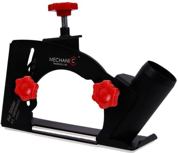 Przystawka DISTAR AiRSLIDER CHARAKTERYSTYKA Płaski, nastawny, czysty poślizg. Na każdej nawierzchni. Nie ma znaczenia, jaki materiał należy ciąć szlifierką kątową, pytanie prostopadłości cięcia, bezpieczeństwa, jakości krawędzi pozostaje aktualne. Nasadka na szlifierkę kątową AirSLIDER 115-125 zamienia szlifierkę kątową w mini-maszynę. Przyrząd można łatwo ustawić na istniejącą osłonę szlifierki kątowej. Stopa z plastikową nakładką umożliwia kontrolowane cięcie oraz nie uszkadza powierzchni materiału. Zapewnia prostopadłość cięcia. Konstrukcja umożliwia regulację głębokości skrawania. Przyrząd zapewnia zwiększoną niezawodność i bezpieczeństwo podczas pracy z różnymi tarczami. Do przyłącza należy podłączyć odkurzacz. Umożliwia pracę z różnymi materiałami: ceramiką, granitem, laminatem, drewnem, metalem i wielu innymi powierzchniami. Nadaje się do szlifierek kątowych o 115 i 125 średnicach tarcz wszystkich modeli i producentów