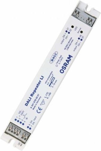 Korzyści ze stosowania produktu Elektroniczna układy zasilające podłączone do repeatera pracują jako grupa Możliwość adresowania przez DALI Możliwość połączenia kaskadowego Obszar zastosowań Urządzenie do montażu w oprawach oświetleniowych Cechy produktu Rozszerzenie systemów DALI, o 64 …