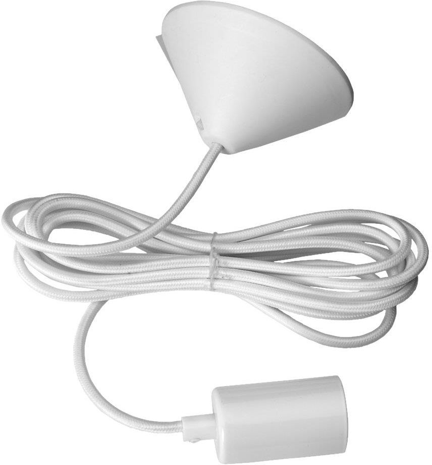 Stylowe zawieszenie lampy wyposażone w przewód w oplocie tekstylnym, osłonę sufitową, ucho mocujące i oprawkę z gwintem E27. Specyfikacja techniczna Gwarancja (w miesiącach): 12 m.Kolor: BiałeNapięcie: 230 VRodzaj kabla: SKX 2G0,75 mm²Oprawka: E27Długość kabla: 4 m