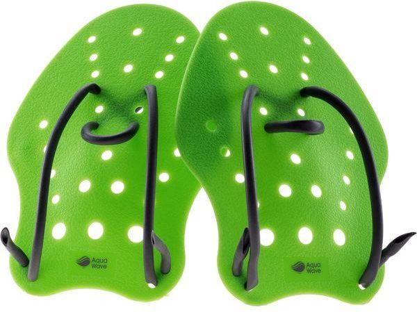 Wiosełka do pływania Aquawave Paddle Właściwości: PADDLE to niewielkie wiosełka pływackie zakładane na wewnętrzną stronę dłoni. Służą zwiększeniu efektywności podczas treningu w wodzie i ułatwiają wypracowanie lepszej techniki pływania. Ich ergonomiczny kształt i perforowana powierzchnia pozwalają lepiej czuć wodę i precyzyjniej kierować ciałem podczas pływania. Przy ćwiczeniach technicznych wiosełka wymuszają na pływaku hydrodynamiczne ustawienie sylwetki, efektywniejszą pracę nóg oraz perfekcyjne ruchy dłonią pod powierzchnią wody. PADDLE zostały wykonane z najwyższej jakości tworzyw odpornych na niszczenie i szkodliwe działanie chloru. Solidne, silikonowe uchwyty idealnie dopasowują się do kształtu ręki, nie powodując podrażnień skóry, a ich regulacja eliminuje ryzyko nadmiernego ucisku. Rozmiar M (długość/szerokość): 19,5 cm / 15 cm Rozmiar L (długość/szerokość): 21,5 cm / 16 cm Kolor: zielony