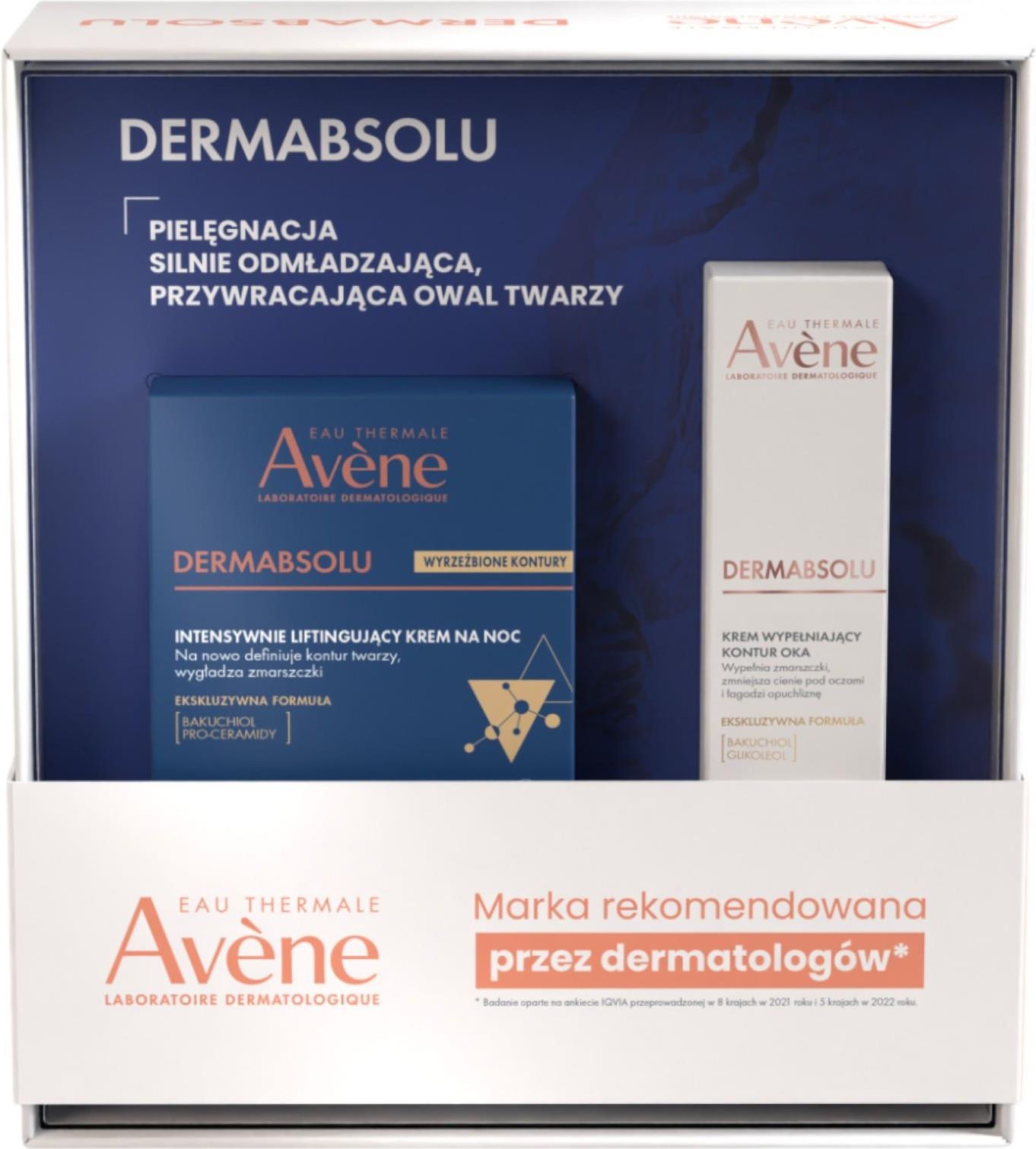 Opis produktu Avene DermAbsolu to luksusowy zestaw przeciwstarzeniowy opracowany z myślą o skórze dojrzałej, wymagającej regeneracji, ujędrnienia i rozświetlenia.Połączenie kremu na noc oraz kremu wypełniającego kontur oka działa kompleksowo – odbudowuje gęstość skóry, wygładza zmarszczki i …