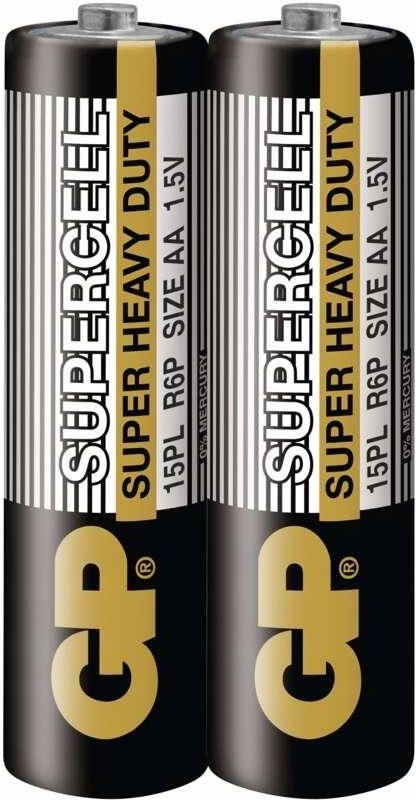 Bateria R6 1.5V AA MN1500 GP Supercell 2sztBateria cynkowo-węglowa pakowana po 2 szt. w foliiWymiary: 14.5x50.5mm. Waga 18g