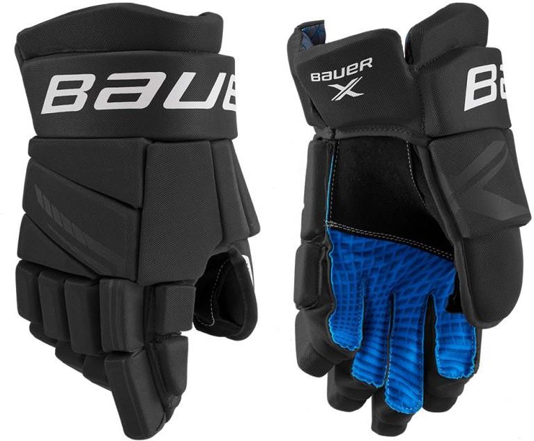 Rękawice hokejowe Bauer X Int 1058649 Właściwości: rękawice hokejowe Bauer X Intermediate Rękawice hokejowe Bauer X Int to idealny wybór dla gracza w sporcie amatorskim. Mają świetny pakiet ochronny, który jest strategicznie zaprojektowany dla hokeja na poziomie podstawowym gracze znajdą natychmiastowy komfort i dopasowanie, co powoduje że ich gra jest luksusowa. Materiał zewnętrzny Bauer X jest pokryty zintegrowaną powłoką z siatki poliestrowej, która jest lekka i trwała. Konstrukcja palców i ochrona grzbietu Bauer X ma tradycyjną, zwężającą się konstrukcję oznacza to, że rękawica dobrze przylega do palców i grzbietu dłoni oraz jest otwarta w okolicy mankietu. Palce są chronione pianką o różnej gęstości i wstawkami z PE (polietylenu), które zapewniają dodatkową ochronę w obszarach o dużym kontakcie Materiał: syntetyczny Kolor: czarny niebieski