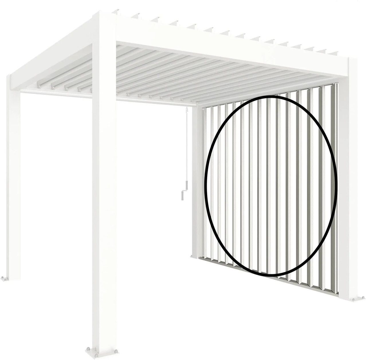 Żaluzjowy panel boczny Biohort jest regulowany ręcznie i zapewnia niezawodną ochronę przed wiatrem i warunkami atmosferycznymi. Pozwala na elastyczne dopasowanie do różnych zastosowań i przyczynia się do większego komfortu na zewnątrz. Żaluzjowy panel boczny pozwala na indywidualną aranżację pergoli. Może być stosowany zarówno jako element dekoracyjny, jak i jako element otwartego przejścia. Montaż boczny za pomocą korby nie jest możliwy w pergolach z ręcznie obsługiwanym systemem żaluzji dachowych. W zestawie znajduje się pasująca zaślepka, która zapewnia estetyczne i estetyczne wykończenie.