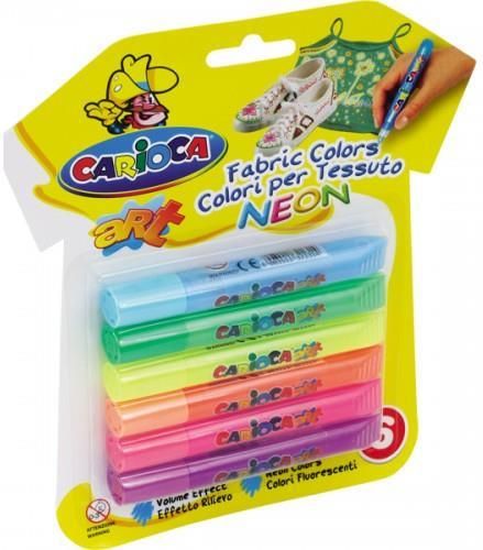FARBY DO TKANIN CARIOCA NEONOWE 6 KOLORÓW wysokiej jakości farby do tkanin pozwalają tworzyć wypukłe wzory intensywne żywe kolory czas schnięcia - min. 5 godzin, w zależności od grubości warstwy niespieralne - zapewniają trwałe zdobienie tkaniny neonowe 6 kolorów zgodne z wymaganiami UE"Nr oferty xSale KW1036