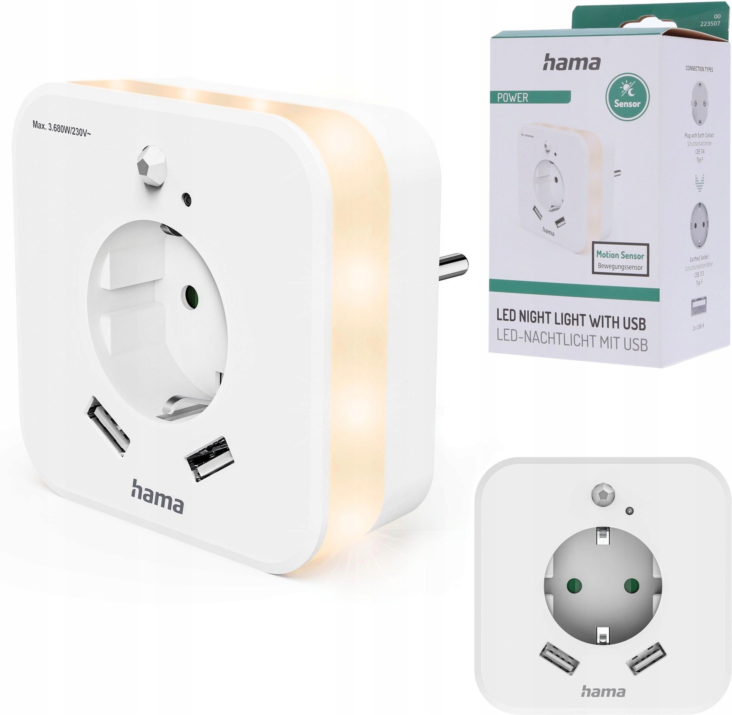 Hama Lampka Nocna Led Z Gniazdkiem 2 Wyjścia Usb Czujnik Ruchu I Światła Zabrze