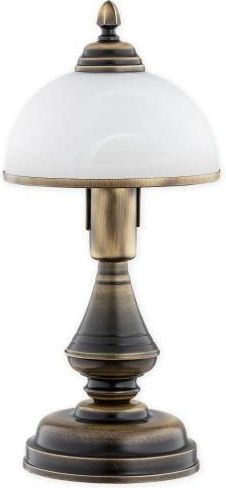 Lampa gabinetowa Hermes lampka stołowa 1 pł. / patyna O3168 L1 PAT Lemir IP IP20 Klasa ochronności II Wyłącznik lampy na przewodzie Ilość źródeł światła 1 Rodzaj oprawki E27 Max. moc żarówki 60 W brak w komplecie Materiał oprawy stal + odlew ZNAL Kolor oprawy patyna Materiał klosza szkło Kolor klosza biały alabaster / patyna Rozpiętość 19 cm Wysokość 40 cm