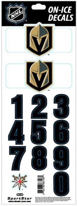 Dodaj urok do swojego hokejowego wyglądu dzięki numerom Sportstape ALL IN ONE HEŁM DECALS w stylu Vegas Golden Knights do białych kasków.