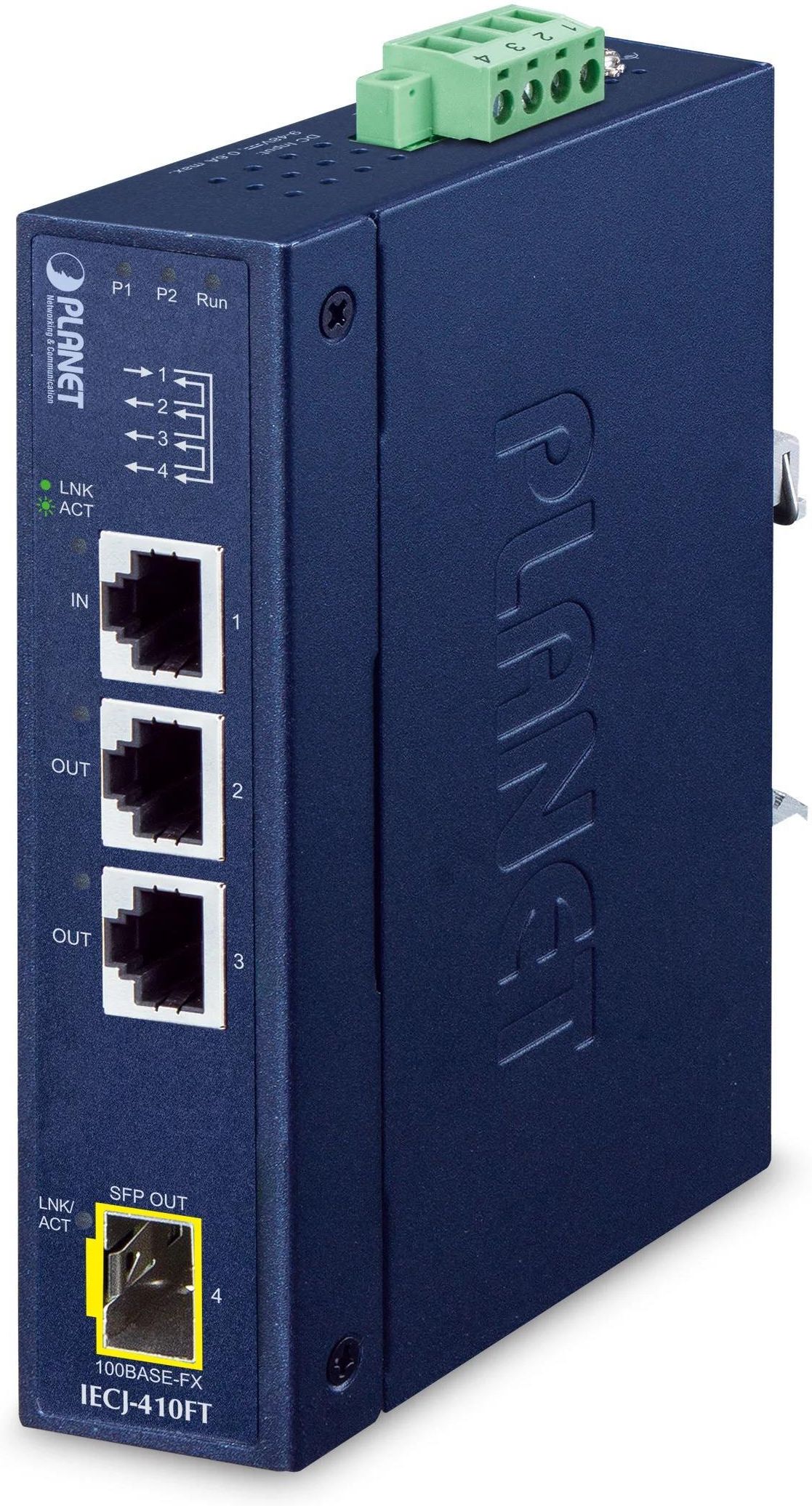 PLANET (IECJ-410FT) Planet IECJ-410FT Industrial 3-Port RJ45 + 1-Port SFP EtherCAT Junction Slave (-40~75 degrees C, dual 9~48V DC, 1 x 100TX RJ45 IN, 2 x 100TX RJ45 OUT, 1 x 100FX SFP OUT, BECKHOFF EtherCAT conformance