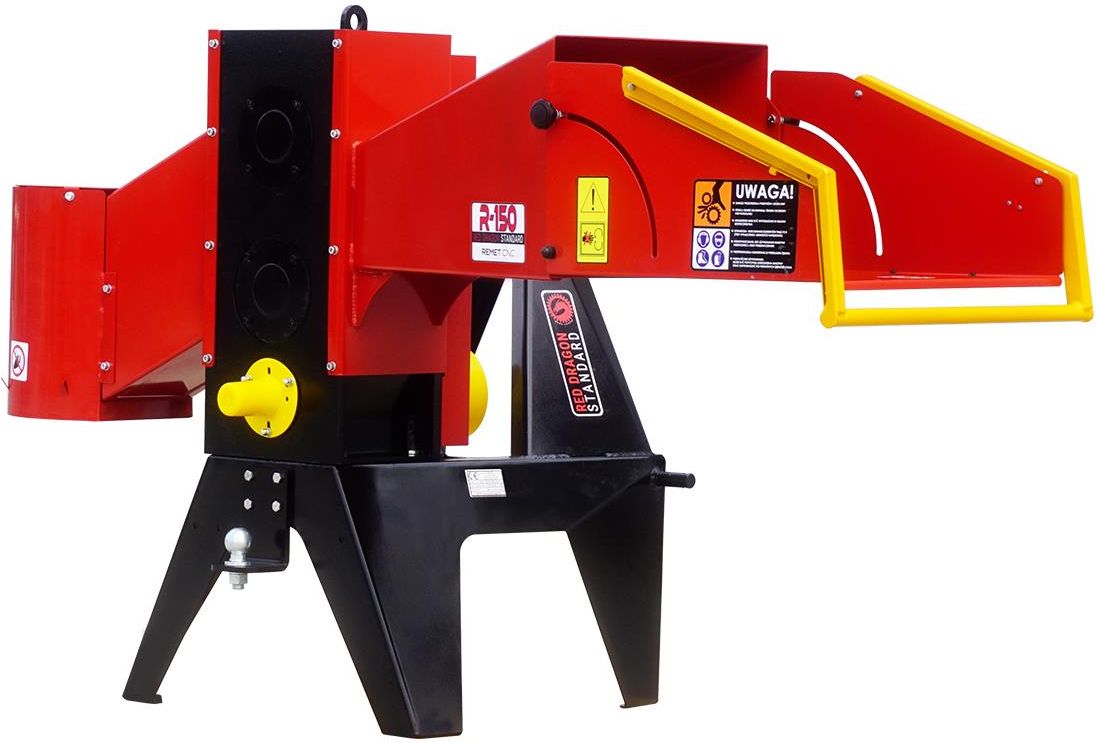 Rębak do gałęzi do ciągnika WOM R-150 REMET 6 NOŻOWY do 14 cm Rębak do Ciągnika WOM Model R-150 Rębak walcowy R-150 STANDARD przeznaczony jest do ciecia gałęzi o średnicy do 14 cm, w całości zaprojektowany i wykonany przez REMET CNC TECHNOLOGY. Konstrukcja spawana w pełni rozbieralna , zapewniająca odpowiednia sztywność i trwałość. Mechanizm tnący wykonany precyzyjnie na centrum obróbczym CNC, z jednego założenia, aby zapewnić odpowiednią jakość, dokładności oraz współosiowość co przekłada się na długą żywotność podzespołów jak i całego urządzenia. Mechanizm wyposażony jest w tuleję rozporowo zaciskową która służy do pozycjonowania noży tnących, pełni również funkcje zabezpieczenia przeciążeniowego. Rębak można wyposażyć w koło zamachowe/pasowe oraz w składany przenośnik taśmowy, możliwość wysypu wzdłuż lub na bok. Specyfikacja konstrukcja spawana (w pełni rozbieralna) dodatkowy tylny wałek pod koło zamachowe/pasowe regulowany prześwit miedzy nożowy hartowane indukcyjnie koła zębate długi rozkładany lej wrzutowy zaczep kulowy do przyczepki trój-punktowy układ mocowania do ciągnika Dane techniczne Minimalna / zalecana moc: 45/80 kM Szerokość wewnętrzna mechanizmu: 220 mm Max. średnica cięcia gałęzi (świeże miękkie drewno): 140 mm Max. średnica cięcia gałęzi (świeże twarde drewno): 130 mm Waga: 290 kg Max. średnica cięcia gałęzi (suche twarde drewno): 120 mm Grubość noży: 12 mm Średnica kół zębatych: 280 mm Grubość obudowy mechanizmu tnącego: 20 mm Zalecane obroty wałka WOM: 540 obr/min (prawostronne) Wykonanie noży tnących: Trudnościeralna stal o podwyższonej twardości Lej wsadowy: 62/38 cm System mocowania rębaka: Trójpunktowy układ zawieszenia Zaczep do przyczepki uciąg: 1000 kg Długość ciętych gałęzi (6 noży): 12-18 cm