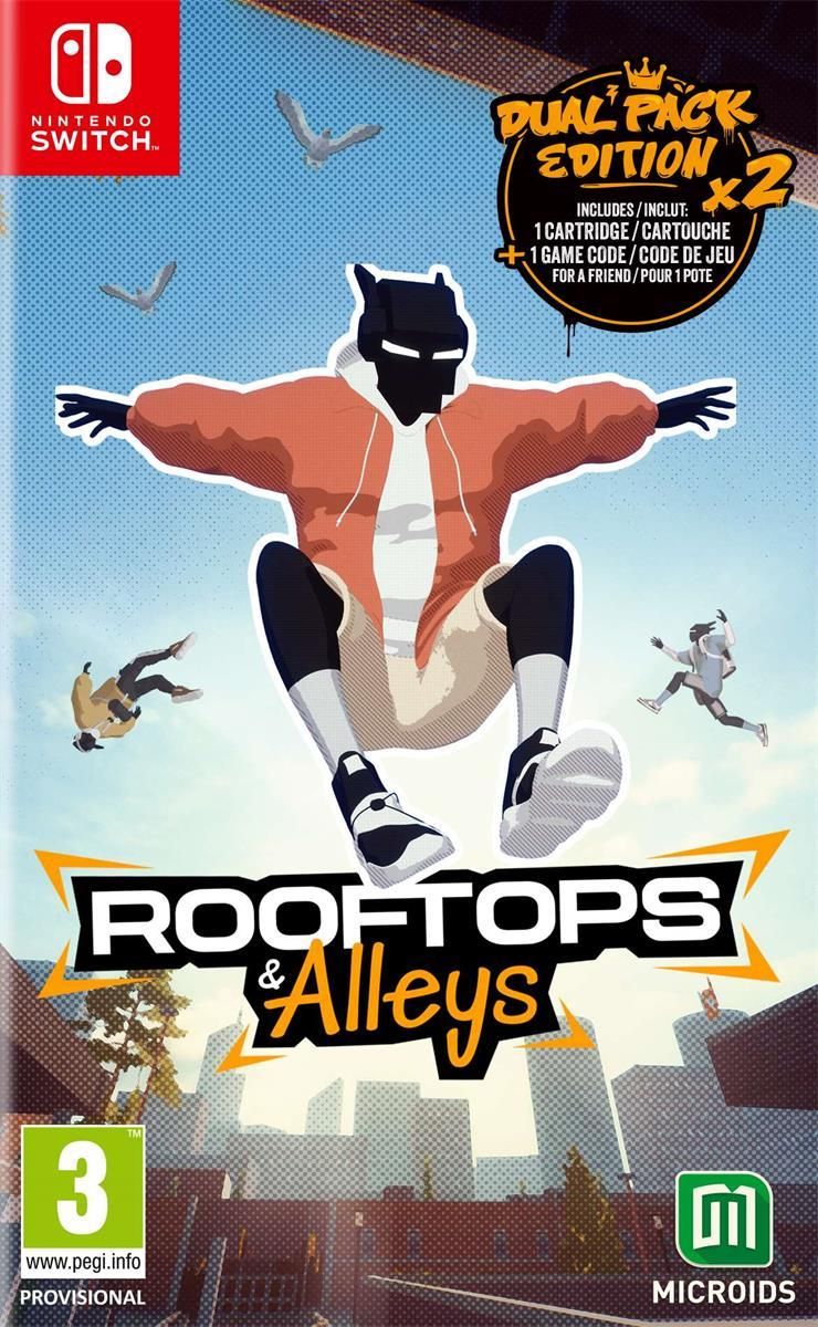 Rooftops & Alleys to coś więcej, niż gra o parkourze i freerunningu. To zastrzyk adrenaliny po wykonaniu super kombinacji trików, złamaniu prawa grawitacji, poczuciu, że lecisz… Dopóki twoja twarz nie spotka się z ciemną alejką 30 metrów niżej. W pojedynkę lub ze znajomymi, odkrywaj ogromne mapy gotowe do parkouru! Odkrywaj wolność wielkich, idealnych do parkouru, map w trybie solo lub ze znajomymi. Odwiedź w nich każdy kąt, by odkrywać ukryte miejsca – próby czasowe, wyzwania trikowe i nie tylko! W grze wieloosobowej możesz wypróbować tryby berka, flagi lub bitwy na triki. Możesz też po prostu pobiegać ze znajomymi! CECHY GRY Zwiedzaj wielkie, rozbudowane w pionie środowiska do parkouru Mnóstwo wyzwań i trybów gry, dla jednej osoby lub do grania ze znajomymi tryb zabawy w berka tryb przejmowania flagi tryb swobodnego grania tryb pojedynków na triki Wezwij gołębia, dzięki któremu poznasz nowe obszary, szybko przeniesiesz się w inne miejsce lub zaplanujesz trasę Odblokuj ponad 100 opcji personalizacji postaci i gołębia Edycja Dual Pack zawiera grę na wybraną platformę na nośniku, oraz dodatkowy kod na cyfrową kopię gry do podzielenia się ze znajomym