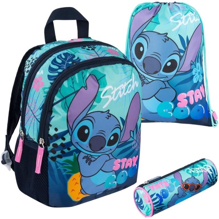 St. Majewski Zestaw Plecak Mały Przedszkolny Wycieczkowy + Worek Na Obuwie Buty Sportowy Piórnik Szkolny Tuba Stitch Stay Cool Zabrze