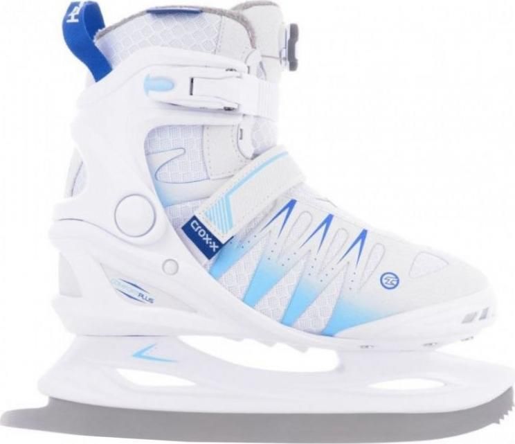 Łyżwy figurowe Tempish Crox.X Top W 1300001634 40 Łyżwy hokejowe TEMPISH Crox.X Top Lady Właściwości CROX.X TOP to model z popularnym designem przeznaczony do hokeja hobbystycznego i sportów rekreacyjnych. Łyżwy są bardzo lekkie, dobrze izolowane termicznie oraz łatwe i szybkie w zakładaniu i zdejmowaniu. Zewnętrzna trzyczęściowa skorupa wykonana jest ze sztywnego tworzywa PE o wytrzymałości do -25 °C. Ostrze mocowane jest do buta za pomocą śrub poprzecznych. Górny kołnierz dopasowuje się do stopy za pomocą podwójnej klamry z zamkiem zabezpieczającym. Funkcjonalny materiał zastosowany na wyściółce wewnętrznej jest wzmocniony NYLONEM / NYLEXem. Wewnętrzna wyściółka zapewnia pewne i wygodne trzymanie stopy w bucie i jest anatomicznie ukształtowana wokół kostki i ścięgna Achillesa. But posiada anatomiczną wkładkę, która lepiej przenosi ruch ze stopy na łyżwę. Model ten został ponadto wyposażony w system FitGo, czyli system napinania linki, który umożliwia bardzo szybkie i mocne napinanie i luzowanie oraz wysoki komfort jazdy. Nylonowe oczka oraz nylonowa linka zapewniają prawie nieograniczoną żywotność całego systemu. Bardzo wygodny materiał wewnętrzny „short fun fur” dla lepszej izolacji termicznej oraz lekkie ostrze TEMPISH AIR wykonane ze stali nierdzewnej hartowanej HRC 53-54. PARAMETRY TECHNICZNE Przeznaczenie Jazda rekreacyjna. Damskie Ostrza TEMPISH AIR, ostrze wykonane ze stali nierdzewnej hartowanej HRC 53-54 Materiał zewnętrzny: Zewnętrzna 3-częściowa skorupa wykonana z mocnego materiału PE elastycznego do -25 ° C Materiał wewnętrzny: Wzmocniony NYLON / NYLEX Język: Anatomiczny dwuczęściowy System mocowania: System FitGo, 1x klamra, 1x rzep Wyściółka Anatomicznie ukształtowana w okolicy kostki i ścięgna Achillesa